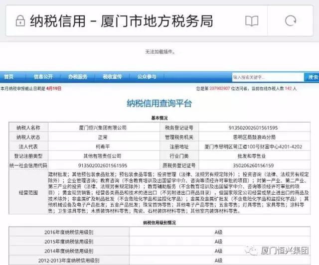 在近期公布的福建省納稅信用等級中,恒興集團及在廈子公司廈門寶拓資源有限公司再次榮獲“A級”信用評級。